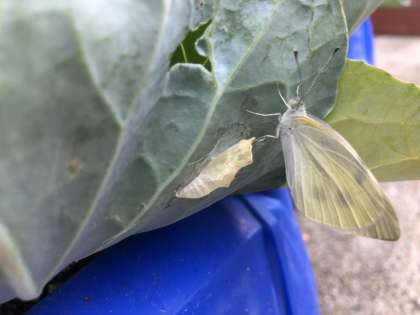うかしたばかりのモンシロチョウはとってもきれいに見えますね。