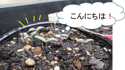 このまえ,たねまきをしたミニトマトのめが出ました!