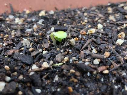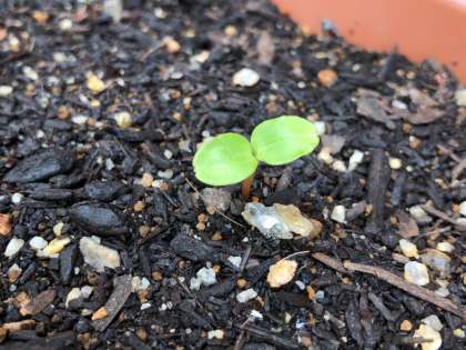 こちらのしゃしんは,ホウセンカの芽(め)です。