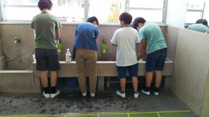 昨日6月1日から学校が再開し,今日からは分散登校が始まりました。今日はAグループが登校しました。休み中の課題の復習をしたり,学校での過ごし方の話を先生から聞いたりしました。また,休憩時間には,丁寧に手洗いをしている姿もありました。