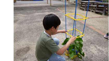 「このままだと,友達の植木鉢まで つるが伸びていきそう!困ったな。」