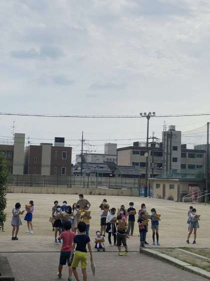 学校の同じ場所に立って,午前中と午後の天気の変化の観察を行いました。