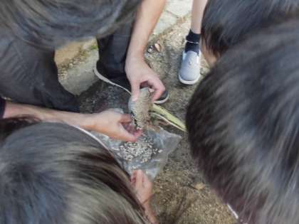 みんなで一生懸命にひまわりの種の観察をしています。