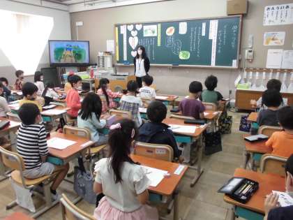 7日(水)1年生の教室で,道徳の学習「かぼちゃのつる」の研究授業がありました。
