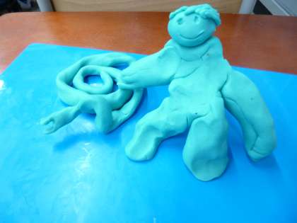 図画工作の時間に,粘土でお散歩している自分とその仲間を作りました。