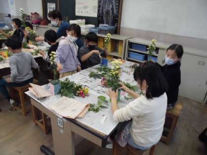 2日(月)に2組で生け花教室がありました。