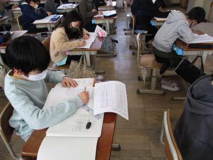 アンケート結果だけを見るとばらばらで分かりにくいですが,表にまとめると何がどれだけの人数に人気なのかすぐに分かります。数え落としのないようにチェックをつけながら表を完成させていました。