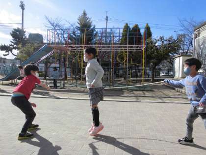 1年生の子どもたちが縄跳びをしています。