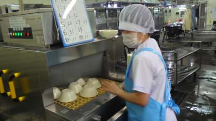 今年度の給食は,450人分を4人の調理員さんで作っていきます。