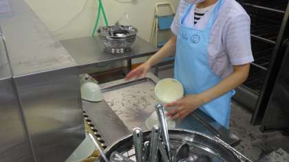 給食後は,たくさんの1800枚の食器洗浄・食缶の洗浄・給食室の器具の洗浄消毒など,たくさんのお仕事があります。