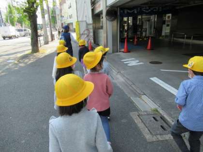 中京警察署の方に,道路の歩き方や横断歩道の渡り方を教えていただきました。