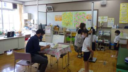 保健室では,初めてなのにとても上手に並んで待っていました。