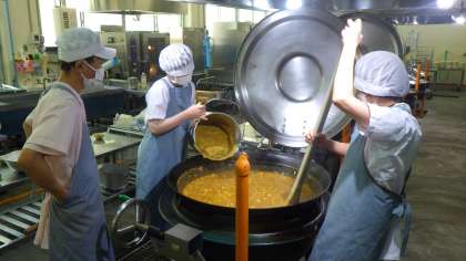 学校では,手作りのルウを作っています。
