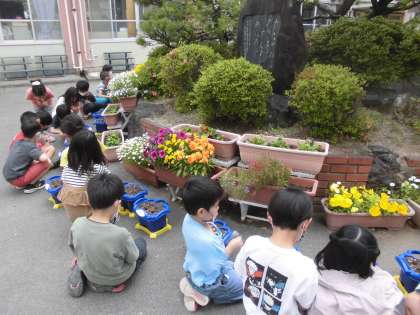 1年生 あさがおの種を植えました