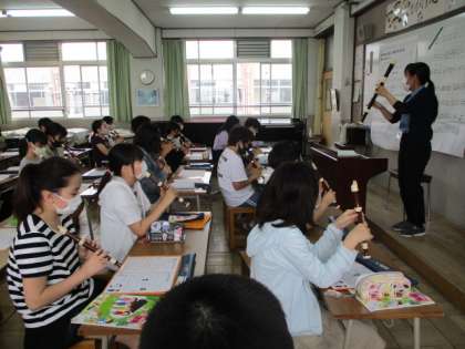 今日の音楽の授業では,リコーダーで「メヌエット」の