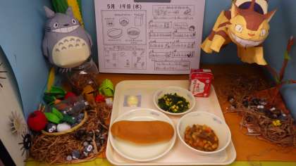 「ほうれんそうのソテーがあまくておいしかったです。ミルクコッペパンとだいずとぎゅうにくのトマトにをいっしょに食べるととてもおいしかったです。」(4年児童)