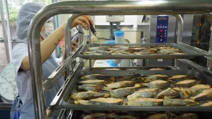 鮭の塩麹焼きは,スチームコンベクションオーブンで蒸し焼きにしました。