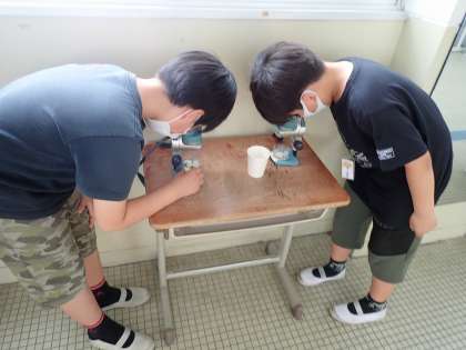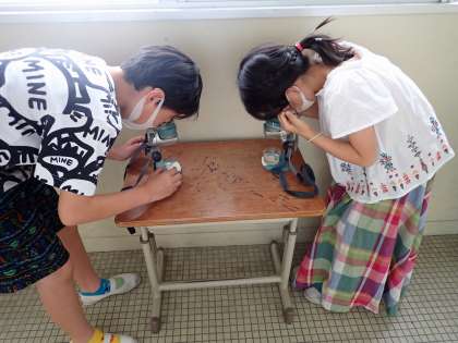 おたまじゃくしやミジンコを顕微鏡で見てみました。