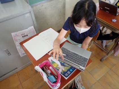 GIGA端末で季語を調べながら,日常の気づきや驚きの俳句を作成中です。