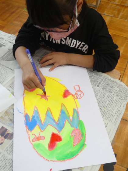 いろをまぜながら,すてきな「まほうのたまご」をかいています。