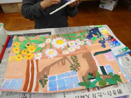 3,4ねんせいも,はなのえを かいています。