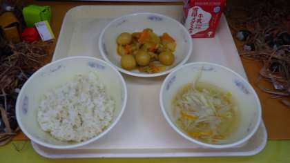 「鶏肉とうずら卵のスパイシー炒めがご飯と合っていておいしかったです。」(5年児童)