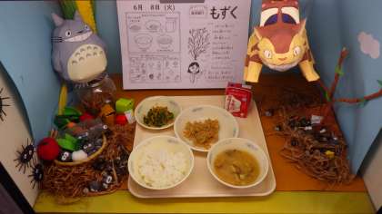 「もずくのみそしるのもずくがつるつるしていておいしかったです。」(3年児童)