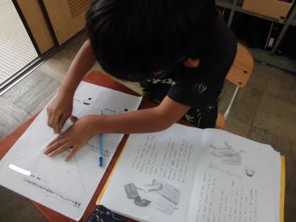 国語科では,「共感マップ」を使って主人公の心情の変化を考えています。主人公と同じように,お話の中で起こる不思議な出来事に,わくわくしながら読んでいます。