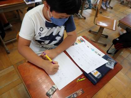書写では,5年生はじめての硬筆でした。