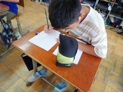 書いた後の,作品を見てみるとみんなすばらしい字を書いていました。