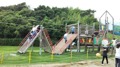 ホテルに入る前に,すぐ近くの公園で遊びました。貸し切り状態で,いろんな遊具で遊びました。