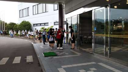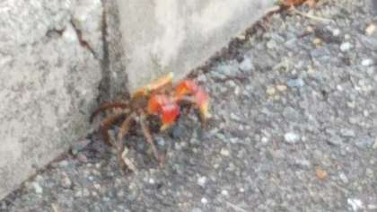 ホテルに入りました。海がすぐ目の前なのでホテルの玄関の近くにも蟹が歩いています。代表の人がホテルの人にご挨拶しました。