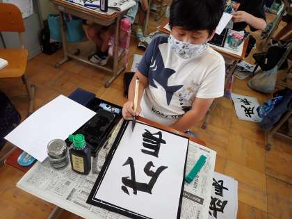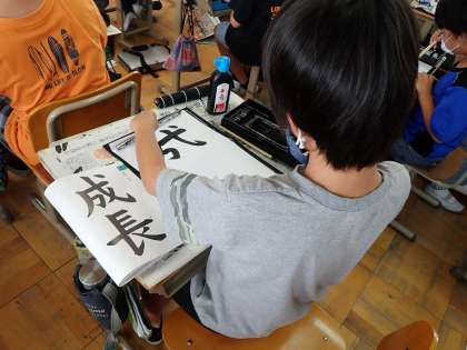 1学期最後の書写は「成長」という文字を書きました。