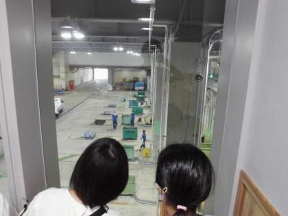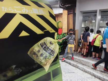 実際にごみを捨てている様子を見学しました。職員さんになりきれる背景があり,記念撮影もしました。