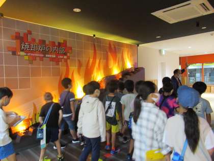 焼却炉をイメージした展示を見て,子どもたちはびっくり!