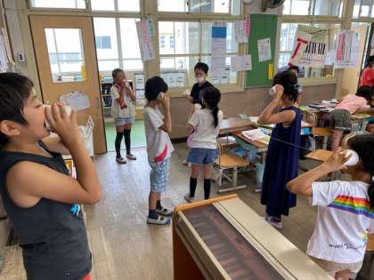 糸電話を4人でつなげてみよう!