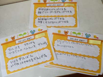 じぶんなりのめあてを かんがえました。