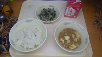 「マーボどうふがすこしからくておいしかったです。」(3年児童)