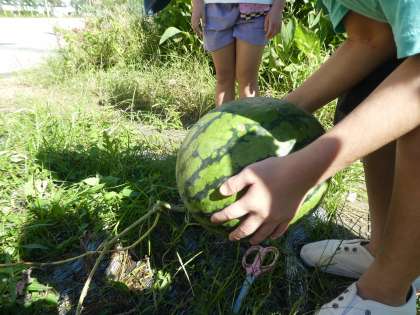 すいかのしゅうかくを しました (ひまわりがっきゅう)