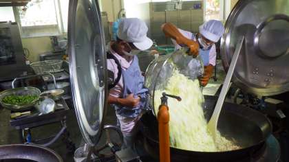 「肉みそ炒めの中に入っていた野菜にしっかりみその味がついていておいしかったです。」(4年児童)