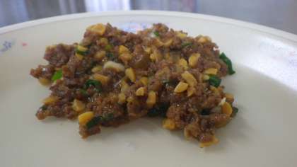 「肉みそ納豆の具が少しからかったけれど,おいしかったです。納豆の食感とのりのパリパリがあっておいしかったです。」(4年児童)