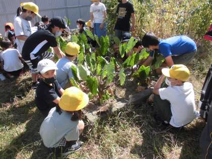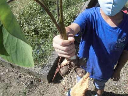 2年生が一生懸命に育てたずいきを収穫しました。