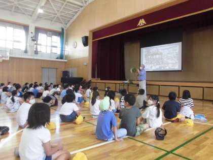 体育館では,ずいき祭りのこともたくさん教えてもらいました。