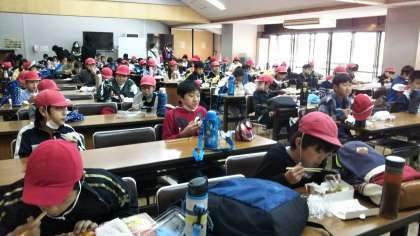 雨が降ってきたので,お昼ご飯は研修室でいただきました。おうちの人に朝早くから準備していただいたお昼ご飯をおいしくいただきました。ありがとうございました。
