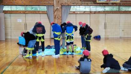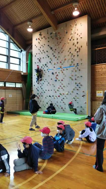 ボルダリングになれたらクライミングに挑戦です。まず,補助具を付けます。そして,先生に補助してもらって挑戦です。ちょっと高くてドキドキしますが,できた時の達成感は素晴らしいようです。