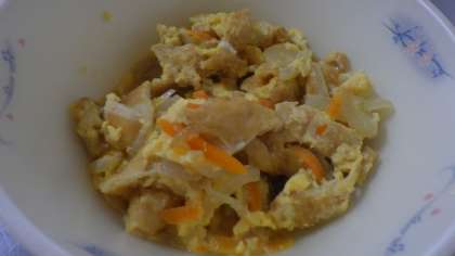 あげたま煮は,油あげをだし汁などでじっくりと味を含ませて煮つけてから,野菜と合わせ,たっぷりの卵を割りほぐして入れました。油あげからおいしいだし汁がじゅっとでてきて,ごはんが進みました。