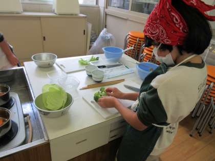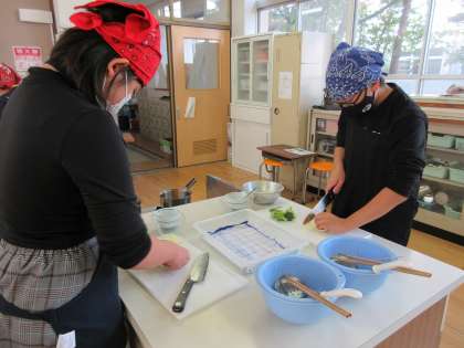 今日は1組で調理実習を行い,ゆで野菜サラダを作りました。苦手な野菜もすべて食べきりました。1組の子どもたちもとてもおいしそうに食べていました☆