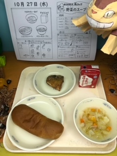 「やさいのスープ煮が野菜がいっぱい入っていて,今度家で作ろうかなと思いました。おいしかったです。さばのカレー揚げは,かわのところがカリッとしていておいしかったです。しっかり中まで火が通っていておいしかったです。」(5年児童)