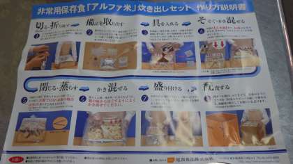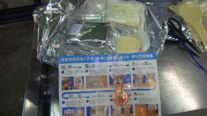 今日は,台風等の非常用に学校に保管しておいたアルファ化米や缶詰め,乾物などを使って給食を作りました。