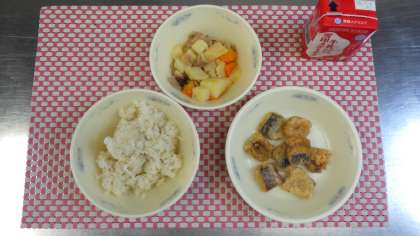 「いわしのこはくあげがおいしかったです。煮つけのじゃがいもがほくほくしていておいしかったです。」(3年児童)